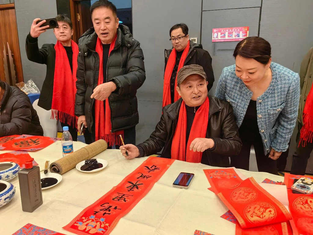 1月8日,烟台市文艺评论家协会的书画家们走进芝罘区向阳街道商会,在商会年度总结大会召开之际,为百余位企业家现场创作书画作品、书写春联福字,以翰墨丹青传递新春祝福。