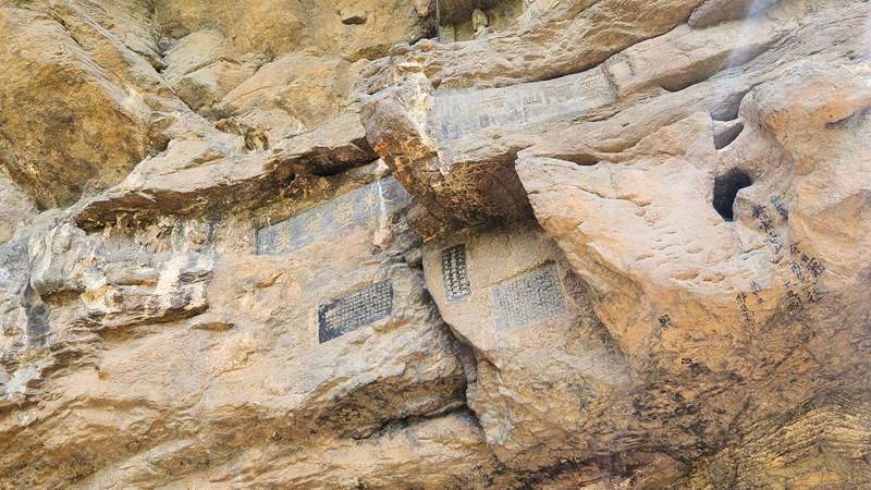 寺外数十株百年青檀,或生坡间,或倚绝壁,根若龙蟠,紧附岩壁,与古刹相守,伴诸佛静立,愈显厚重幽寂。崖壁之上,明清题刻遍布,“清泉出厨间,云生殿内”、“凝神调息”、“别有天”,字字沉厚,意境幽远,为山水注入了无限魂魄。隋唐摩崖造像庄严沉静,《大唐金刚之会碑》字迹尚存,香火虽寂,文脉未绝。